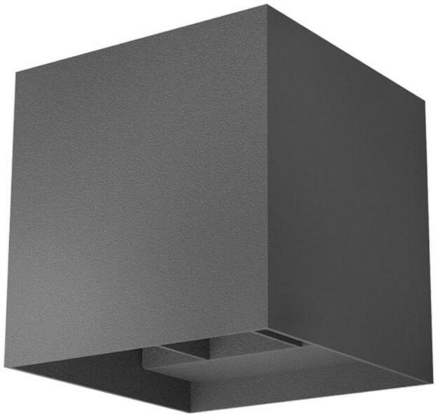 Sötét szürke színű alumínium kültéri fali lámpa 4x5W természetes fehér fényű beépített LED fényforrással, IP54-es védelemmel, edzett üveg betéttel. A lámpa felfelé és lefelé egyaránt világít. A fényszórás szöge állítható, így egyedileg világíthatjuk meg a homlokzatot, illetve kedvünk szerint változtathatjuk.