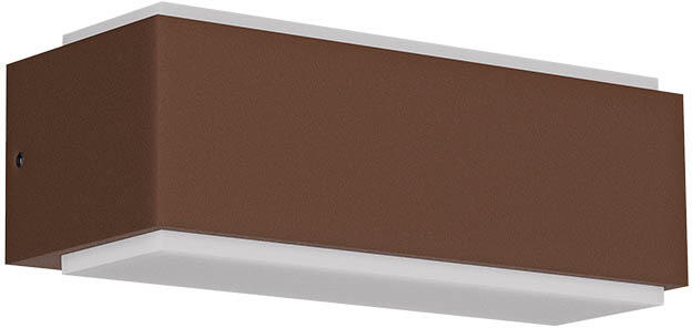 Barna színű alumínium kültéri fali lámpa 7,7W meleg fehér fényű beépített LED fényforrással, IP65-ös védelemmel, opálos polikarbonát betéttel. A lámpa felfelé és lefelé egyaránt világít.