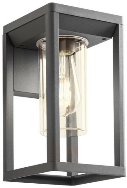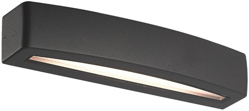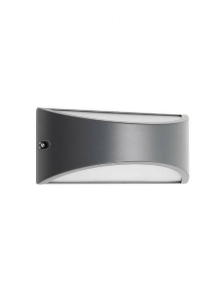 Sötét szürke színre festett alumínium vázas kültéri fali lámpa opálos polikarbonát búrával, beépített LED fényforrással, IP54-es védelemmel.