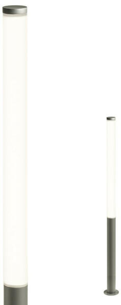 Sötét szürke színű alumínium kültéri álló lámpa 100W meleg fehér fényű beépített LED fényforrással, opálos polikarbonát búrával, IP54-es védelemmel.