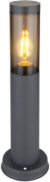 Antracit színre festett rozsdamentes acél kültéri álló lámpa füstös műanyag búrával, E27-es foglalattal, IP44-es védelemmel.