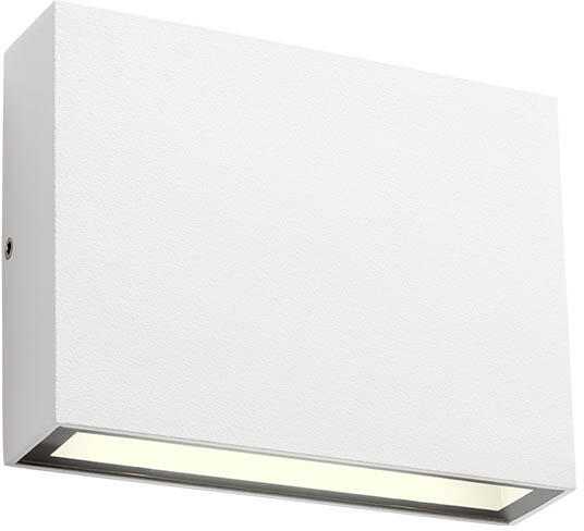 Matt fehér színű alumínium kültéri fali lámpa 4,4W meleg fehér fényű beépített LED fényforrással, IP54-es védelemmel, edzett üveg betéttel. A lámpa felfelé és lefelé egyaránt világít.