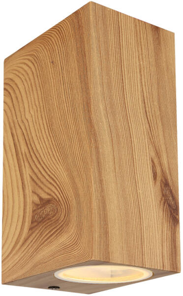 Kültéri könnyű alumínium fröccsöntött fa megjelenés, átlátszó üveg, fényirány: fel és le, IP44, SZxM: 68x150mm, Mélység: 92mm, nem tartozék: 2x GU10 35W 230V
