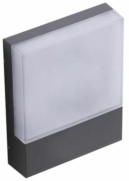 Sötétszürke, szögletes formavilágú kültéri fali lámpa, mely kellemes hangulatot teremt. IP54-es védelmének köszönhetően védve van a fröccsenő vízzel, illetve a porral szemben. Beépített LED fényforrást tartalmaz, mely nem cserélhető. Specifikációk:Gyártó: AZzardo Cikkszám:: AZ-4361 Foglalat: 1 x Beépített LED Méret (ma x sz x mé): 200 x 160 x 48 mm IP-védettség: