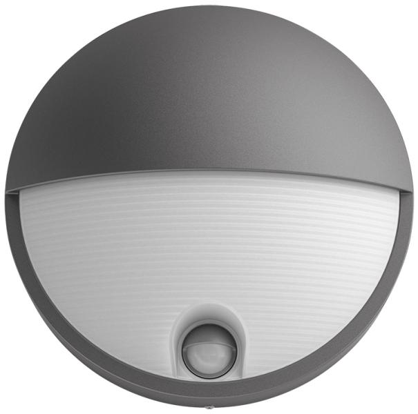 Világítási megoldások a fenntarthatóság jegyében Ez a kerek, kupolás, antracitszürke Philips Capricorn LED kültéri fali lámpa tartós, fröccsöntött alumíniumból készült és a biztonság érdekében mozgásérzékelővel rendelkezik. A félholdas kialakítás erőteljes, de szórt meleg fehér fénnyel ragyogja be a külső tereket. Energiatakarékos Ez a Philips energiatakaréko