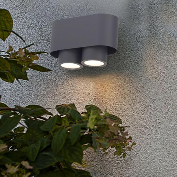 Lutec kültéri fali lámpa - Cypres Tökéletes megjelenéssel, kifogástalan külső formájával teraszok, kerti kiülők, homlokzatok megvilágítására. Paraméterek: Fény típusa: fali lámpa, spot Rögzítés anyaga: nehéz alumínium Diffúzor anyaga: Tiszta üveg Rögzítés színe: sötét szürke EAN szám: 6939412014883 Garancia: 5 év IP besorolás: 44 Elektromos védelem: I. osztá