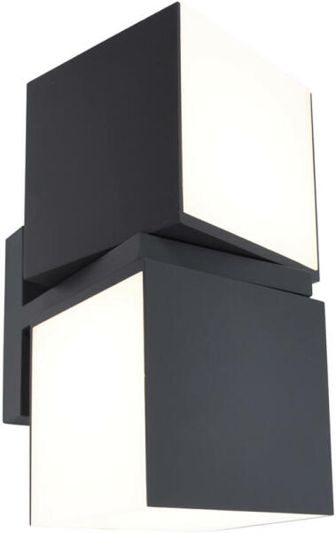 Lutec Cuba modern megjelenésű kültéri fali lámpa, amely alkalmas vízszintes és függőleges felszerelésre is. Mindkét lámpafej 350 fokban elforgatható. Az integrált LED modul 4000 kelvin színhőmérsékletű fénnyel világít. A lámpatest alkalmas külső homlokzatok, teraszok és bejáratok megvilágítására. A termékbe épített LED fényforrás, hosszan tartó működést tesz