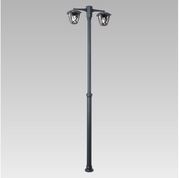 Matt fekete színű alumínium kültéri kandeláber átlátszó polikarbonát búrával, IP44-es védelemmel.