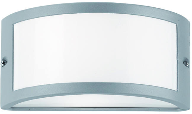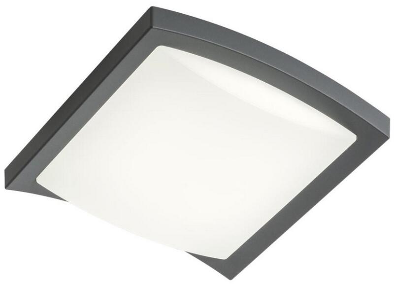 Szürke színűre festett kültéri alumínium mennyezeti lámpa opál polikarbonát búrával, beépített LED fényforrással és IP54-es védelemmel.