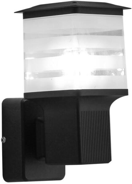 Fekete színű műanyag kültéri fali lámpa műanyag búrával, IP44-es védelemmel.