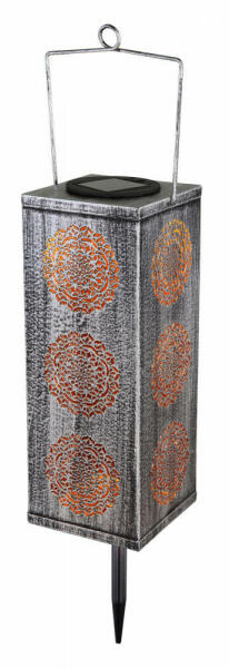 Solar fém lámpa ezüstszürke. Akasztható vagy leszúrható, kapcsolóval, tartalmazza: 1 x AAA Ni-Mh 300mAh, tartalmazza: 1xLED 0,06W 3V. Az ár 1 darab termékre vonatkozik!