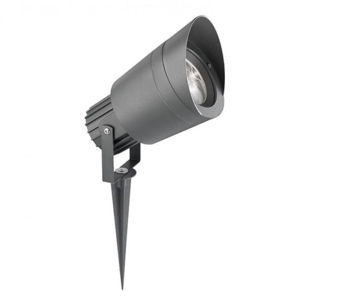 Leszúrható, sötétszürke színű kerti lámpa, anyaga alumínium. A legjobb hatást úgy érhetjük el vele, ha bokrokat, fákat, érdekes felületeket világítunk meg vele. A lámpa 10 cm hosszú vezetékkel rendelkezik, mely segítségével megoldható a lámpa áramellátása. GU10-es halogén izzóval vagy LED fényforrással üzemeltethető, amely nem tartozék. Ip54-es védelemmel rende
