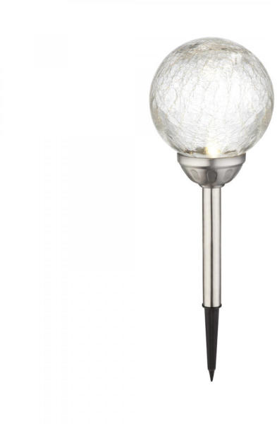 Solar lámpa, rozsdamentes acél, repedezett mintás üveg búra, kapcsolóval, színváltó, 1x 1.2V AA 150mAh Ni-MH, 1xLED 0.06W 3.2V, meleg fehér, 1xRBG LED 0.06W 3, 2V, színes.