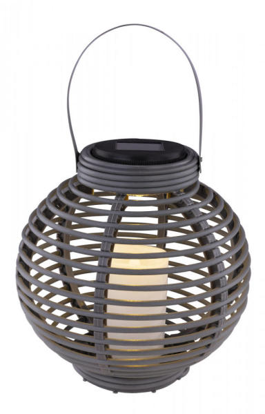 Solar asztali vagy akasztható lámpa, rattan hatású műanyag taupe színű, kapcsolóval, tartalmazza: 1 x 200mAh 1,2V AAA, tartalmazza: 1xLED 0,06W 3,2V. Az ár 1 darab termékre vonatkozik!