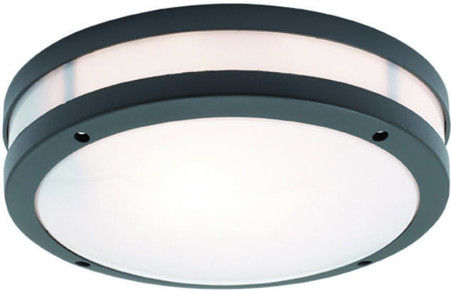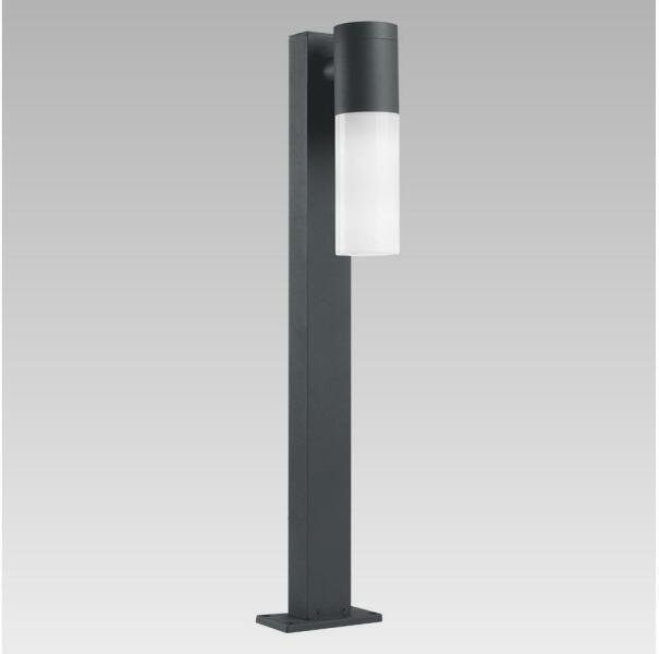 Sötét szürke színű alumínium kültéri álló lámpa opálos műanyag búrával, IP54-es védelemmel.