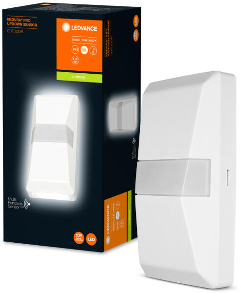 LEDVANCE ENDURA PRO UPDOWN SENSOR 10W 1000 840 IP55 WT, kültéri, fehér, 10 W-os LED reflektor fény- és mozgásérzékelővel, IP55 védelem, 4000 K színhőmérséklettel, 1000 lm fényerővel, 50000 óra átlagos élettartam, 10 év garanciával, szabályozható: nem, lámpa anyaga: Műanyag (PC), energahatékonységi besorolás: A++/A+/A, üzemi feszültség: 220…240 V, sugárzási szög: