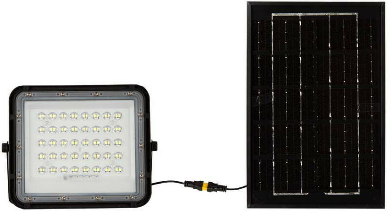 V-tac napelemes LED reflektor (1200 lumen/120°) - Természetes fehér, távirányítós A LED reflektor színhőmérséklete természetes fehér, fényereje 1200 lumen. A reflektorhoz a gyártó egy 23.5x35 cm nagyságú napelemet mellékelt, így a lámpát nem kell rákötnünk a 230 Voltra. A napelem teljesítménye 15 Watt. A napelem felszerelhető bármilyen oszlopra vagy falra. A lámpatest