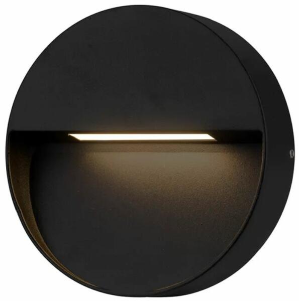 Fekete, kerek kültéri fali lámpa. Kiváló választás lehet akár kültéri lépcsők hangulatos megvilágítására is. IP54-es védelmének köszönhetően védve van a fröccsenő vízzel, illetve a porral szemben. Beépített LED fényforrást tartalmaz, mely nem cserélhető. Specifikációk:Gyártó: AZzardo Cikkszám:: AZ-4366 Foglalat: 1 x Beépített LED Méret (ma x sz x mé): 150 x