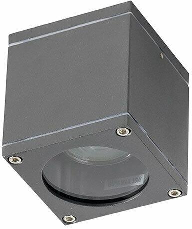 Sötétszürke kültéri mennyezeti lámpa üveglappal. IP54-es védelemmel rendelkezik, ami fröccsenő víz és por elleni védelmet jelent. LED fényforrással üzemeltethető, melyet a csomagolás nem tartalmaz. Specifikációk:Gyártó: AZzardo Cikkszám:: AZ-3323 Foglalat: 1 x GU10-MR16 Méret (ma x sz x mé): 108 x 90 x 90 mm IP-védettség: IP54 Tápfeszültség: 230 Volt Anyag: fém Stíl