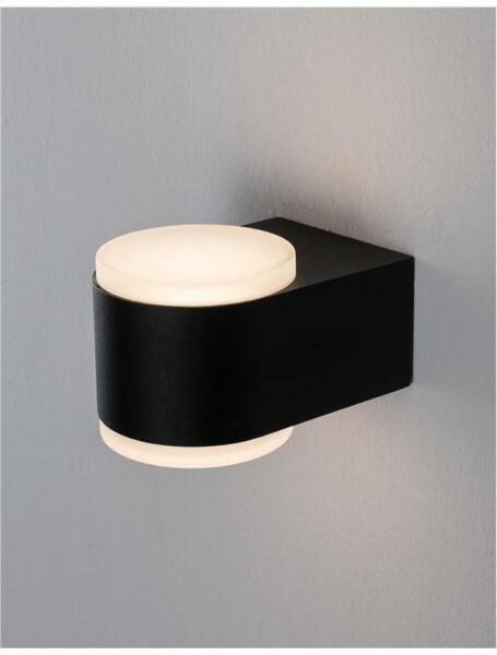 Modern stílusú kültéri fali lámpa. 3000Kelvines, azaz meleg fehér fényű beépített LED fényforrást tartalmaz, mely nem cserélhető. Színvisszaadási aránya 80%, világítási szöge 120fok. IP54-ös védelemmel rendelkezik, azaz fröccsenő víz ellen védet minden irányból. Specifikációk:Gyártó: Nova Luce Cikkszám:: NL-9200202 Méret (ma x sz x mé): 78 x 90 x 132 mm IP-véde