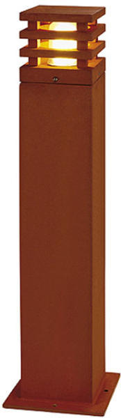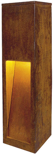 RUSTY SLOT 50 corten acél IP44 E27 kültéri allólámpa angol nyelvű gyátrói leírása: The indirectly radiating floor stands of the RUSTY SLOT series convince by their exceptional rust look. This is achieved by a special chemical treatment of the FeCSi steel used. This makes the luminaire a unique piece and an absolutely special feature wherever they are installed. It is suitable for use out