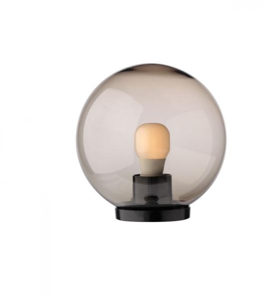 Kültéri fali/mennyezeti lámpa fekete színű, polikarbonáttal bevont cinkelt acél vázzal és gömb alakú füstszínű műanyag búrával, IP 44-es védelemmel. A bevonatnak köszönhetően a lámpa ellenáll az UV sugaraknak és a korroziónak.