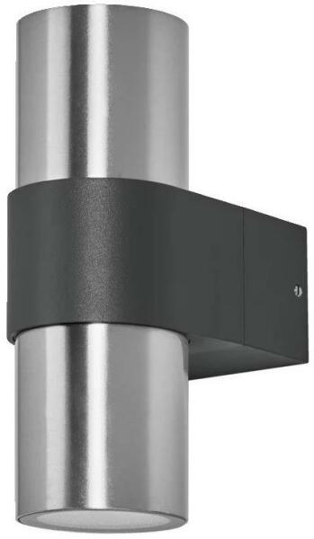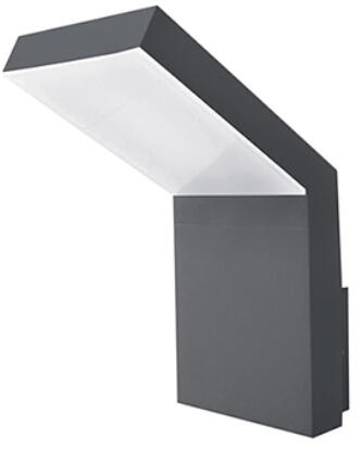 Szögletes alakú modern kültéri fali lámpa. A lámpatest anyaga alumínium, színe sötétszürke. A lámpa 15 fokos szögben világít, meleg fehér fényű, beépített LED fényforrást tartalmaz, mely nem cserélhető. Ip54-es védelemmel rendelkezik, amely véd a fröccsenő víz ellen, illetve nem hatolhat be olyan mennyiségű por, amely zavarná a berendezés működését. Specifikác