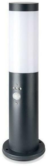 Kivitel Fényforrás nélkül porcelán foglalattal Feszültség 230V Méret 110x110x450mm IP védettség IP44 Anyag Antracitszürkére fújt rozsdamentes acél, műanyag, tejüveges burával Mozgásérzékelő típusa PIR Mozgásérzékelési távolság 2-8m között (szabályozható) Mozgásérzékelési szög 100° Mozgásérzékelő fényérzékelése 2-200 Lux között (szabályozható) Mozg