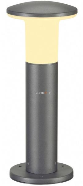 ALPA MUSHROOM 45 antracit IP55 E27 kültéri allólámpa angol nyelvű gyátrói leírása: The aluminium-made floor stand of the ALPHA MUSHROOM 40 emits its light via one opalescent mushroom-shaped lamp head made from PC. With protection class IP55, it is suitable for outdoor use. As optional accessories for the colour and size versions available for the luminaire, we offer suitable earth spikes,