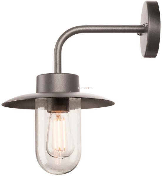 MOLAT antracit IP44 E27 alumínium kültéri falra szerelhető lámpa angol nyelvű gyátrói leírása: The MOLAT wall light equipped with an E27 socket is made from painted aluminium and a pane of glass which covers the socket. The lamp head attached to the curved arm faces downwards. It is suitable for use outdoors thanks to its IP44 protection class. The electrical connection of the luminaire,