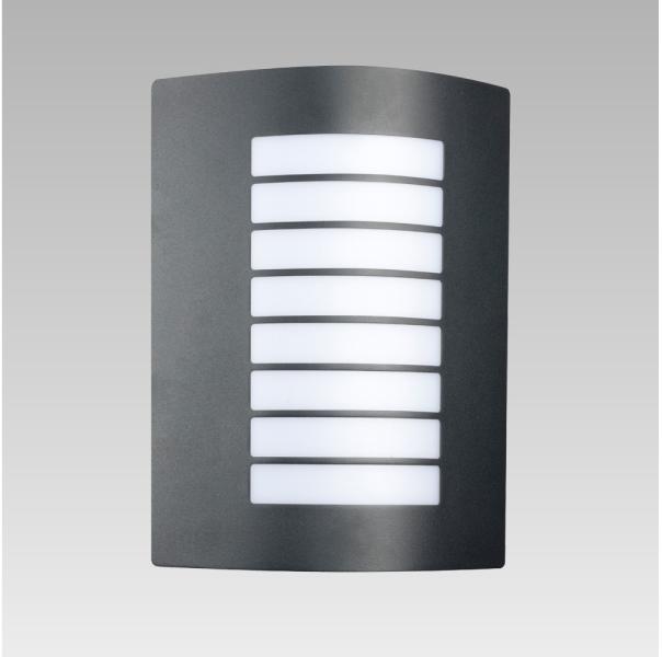 Sötét szürke színű fém kültéri fali lámpa opálós műanyag betéttel, IP44-es védelemmel.