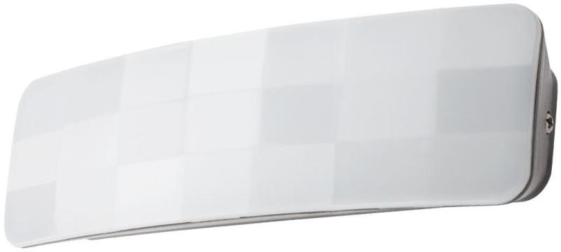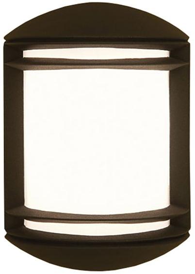 Egyszerű, szögletes kültéri fali lámpa, sötétszürke polikarbonát vázzal és fehér színű polikarbonát búrával. A lámpa beépített LED fényforrással és IP54-es védelemmel rendelkezik.