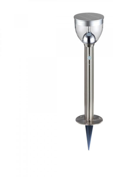 Solar leszúrható rozsdamentes acél, műanyag átlátszó búrával. Mozgásérzékelős. Érzékelő 90°, 2-6 méter hatótávon, tartalmazza: 1xLED 6W 3,7V, fehér fény.