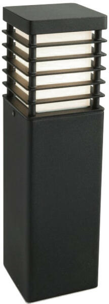 Szögletes formájú, klasszikus stílusú, fekete, kültéri, IP55-os védelmű állólámpa, UV ellenálló, rozsda és korrozió mentes ütésálló gyanta burkolattal. 1 db E27-es foglalattal szerelt, hozzá fényforrás nem jár. A lámpatest méretei: szélessége: 23 cm, magassága: 47 cm.