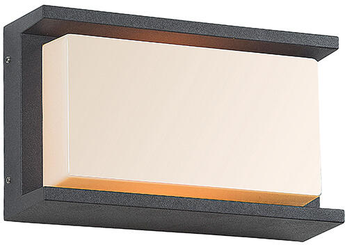 Sötét szürke színűre festett acél kültéri fali lámpa opálos műanyag búrával, IP44-es védelemmel, beépített LED fényforrással.