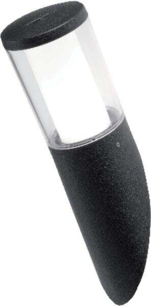 Egyedi formatervezésű, modern kültéri állólámpa. A lámpatest anyaga alumínium, színe fekete. Sugárzási szöge 39 fok, meleg fehér fényű, beépített LED fényforrást tartalmaz, mely nem cserélhető. A lámpa rögzíthető talpazata 150 mm széles. Ip54-es védelemmel rendelkezik, amely véd a fröccsenő víz ellen, illetve nem hatolhat be olyan mennyiségű por, amely zavarná a