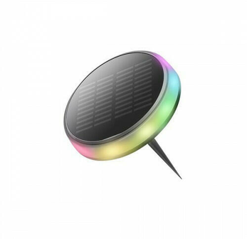 Optonica RGB szolár talajlámpa, fekete Az Optonica talajba süllyeszthető vagy falra szerelhető napelemes lámpa RGB fényével hangulatos, kellemes hangulatot biztosít éjszaka kertjében. A kör alakú, fekete lámpa műanyagból készült. fénykibocsátás az oldalán körben történik a szintén műanyag opál búra alól. A 0.6 Wattos RGB LED-ek fényereje 8 lumen. A szolár talajlámp