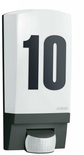 Steinel szenzorlámpa L 1 adatai A csomag a házszám feltüntetéséhez szükséges számmatricákat tartalmazza Világítótest: E27 foglalat max. 100 W Hálózati csatlakozás: 230 – 240 V/50 – 60 Hz Kültéri szenzorlámpa passzív infravörös mozgásérzékelővel Infravörös mozgásérzékelő saját fogyasztása: 0,6 W Érzékelési távolság: 2 - 10 m Védettség: IP44 (fröccsenő