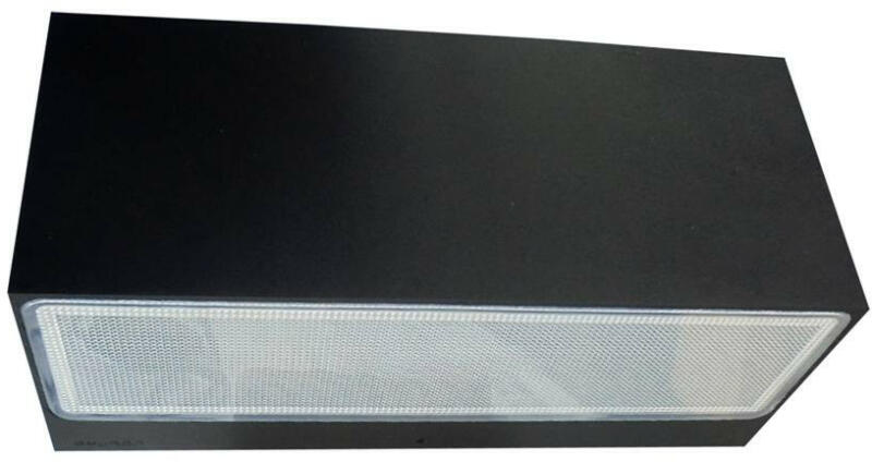 Fekete színű kültéri homlokzatvilágítás, mely felfelé és lefelé is világít, különleges mintázatot vetve a falra. 3000 Kelvines, azaz meleg fehér fényű, beépített LED fényforrást tartalmaz, mely nem cserélhető. IP54-es védelemmel rendelkezik, ami fröccsenő víz és por elleni védelmet jelent. Specifikációk:Gyártó: AZzardo Cikkszám:: AZ-3484 Foglalat: 1 x Beépített