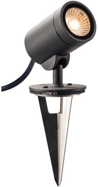 HELIA antracit IP55 8W 3000K alumínium dimmelhető kültéri professzionális LED spot lámpa angol nyelvű gyátrói leírása: The HELIA LED pathway luminaire is equipped with an 8W high-voltage LED and emits a warm-white light colour. The luminaire is made of aluminium and is connected using the 3m supply cable with open cable ends directly to the 230V mains supply. Thanks to its IP55 protecti
