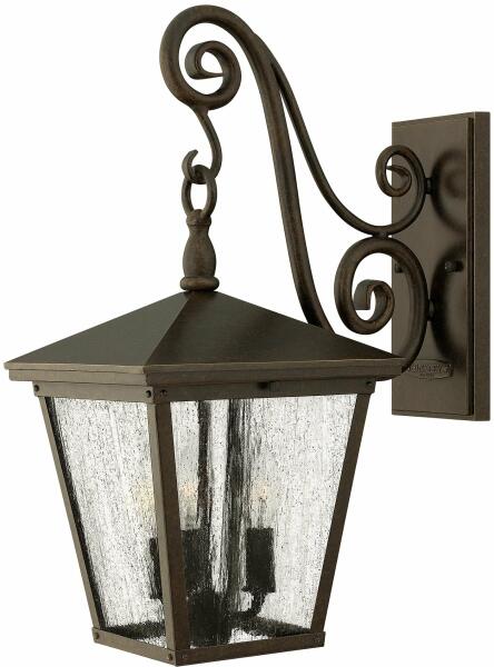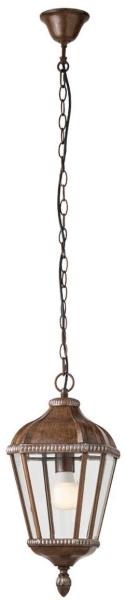 Klasszikus stílusú kültéri függeszték, antik barnára festett alumínium vázzal, átlátszó üveg búrával, IP44-es védelemmel.