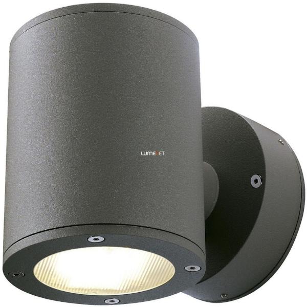 SITRA antracit IP44 GX53 kültéri fali lámpa angol nyelvű gyátrói leírása: The double-headed SITRA wall light is made from aluminium and structured glass, which covers the lamp. Thanks to the position of the two sockets which are fitted, the mounted luminaire produces two equal but opposite cones of light (UP/DOWN). It is suitable for use outdoors thanks to its IP44 protection class. The el