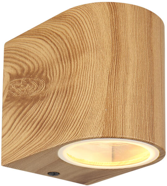 Kültéri könnyű alumínium fröccsöntött fa megjelenés, átlátszó üveg, fény iránya: lefelé, IP44, SZxM: 68x80mm, Mélység: 92mm, nem tartozék: 1x GU10 35W 230V