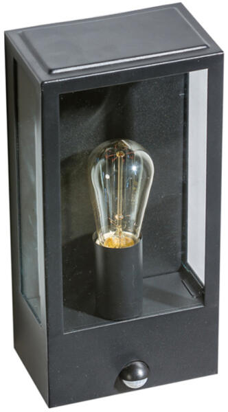 Modern stílusú, mozgásérzékelős, kültéri fali lámpa E27-es foglalattal. A csomagolás a fényforrást nem tartalmazza. A lámpára 150W-ig szabad sorba kötni passzív lámpákat, melyek így mozgásra egyszerre kapcsolódnak a mester lámpával. IP44-es védelemmel rendelkezik, azaz fröccsenő víz ellen védett. Specifikációk:Gyártó: AZzardo Cikkszám:: AZ-4487 Foglalat: 1 x E27 M