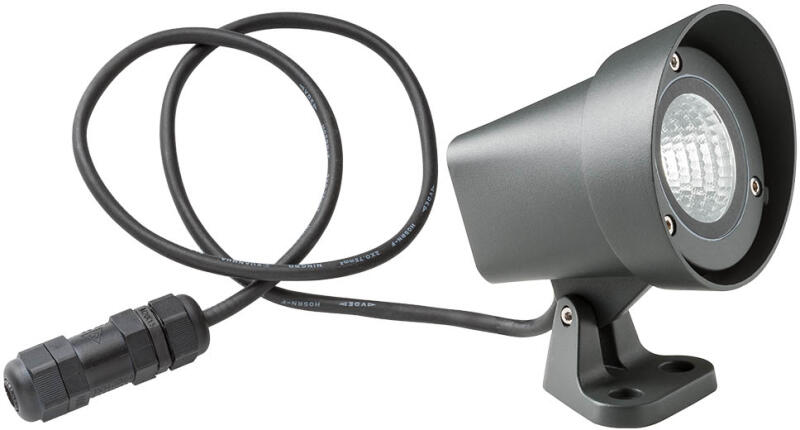 Kültéri mini fényvető sötét szürke színű alumínium vázzal, beépített LED fényforrással, IP68-as elosztóval.