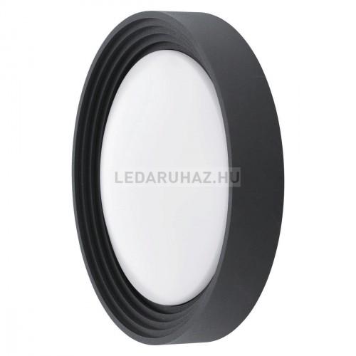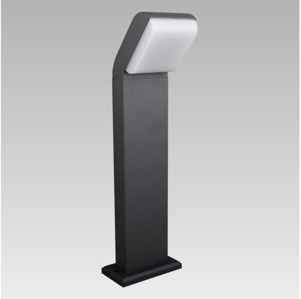 Sötét szürke színű alumínium állólámpa opálos műanyag búrával, beépített LED fényforrással, IP54-es védelemmel.