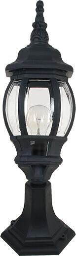 Matt fekete színű alumínium álló lámpa átlátszó üveg betéttel, beépített LED fényforrással, IP44-es védelemmel.