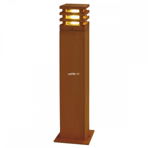 RUSTY SQUARE 70 corten acél IP55 9W 3000K kültéri LED allólámpa angol nyelvű gyátrói leírása: The direct radiating floor stands of the RUSTY series convince by their exceptional rust look. This is achieved by a special chemical treatment of the FeCSi steel used. This makes the luminaire a unique piece and an absolutely special feature wherever they are installed. With protection class IP