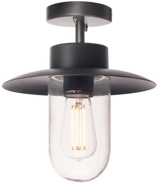 MOLAT antracit IP44 E27 alumínium kültéri mennyezeti lámpa angol nyelvű gyátrói leírása: The MOLAT ceiling light equipped with an E27 socket is made of painted aluminium and a pane of glass which covers the socket. The mounted lamp head is fixed and faces downwards. It is suitable for use outdoors thanks to its IP44 protection class. The electrical connection of the luminaire, which is av