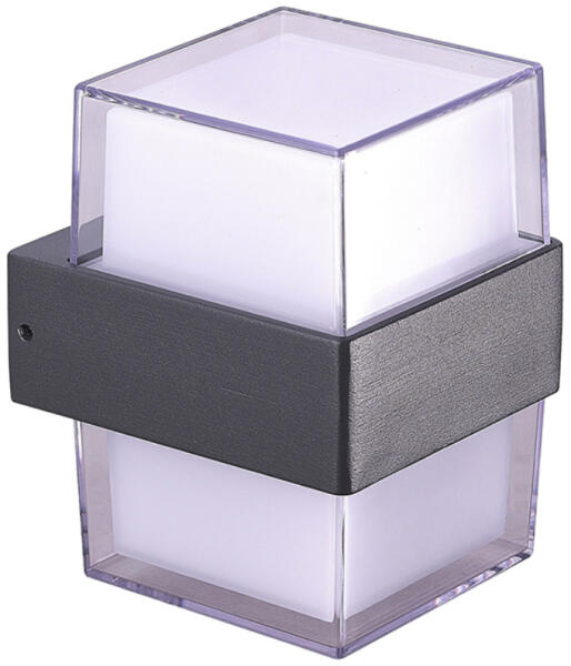 Modern kültéri hangulatvilágítás, melynek opál és átlátszó polikarbonát búrája egyenletesen szórja a fényt. A lámpa felfelé és lefelé is világít. A lámpa teste fém és IP44-es védelemmel rendelkezik. Ideális választás lehet kültérre és fürdőszobába is. A terméket nem gyári csomagolásban szállítjuk. Az akció a készlet erejéig érvényes. Specifikációk:Gyá